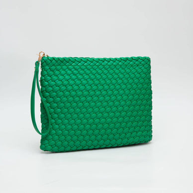 Faux Braided Leather Clutch Bag - Vegan Leather - Zip Closure - Lined Inside With Two Pockets: One Zip / One Open - Detachable Wristlet Strap *Approximately 10" L x 8" T x 1" D* A chic and eco-friendly accessory, this clutch is made from high-quality vegan leather, featuring a stylish faux braided texture. The zip closure ensures your belongings stay secure, while the lined interior offers convenience with two pockets—one zipped for added protection, and one open for easy access. The detachable wristlet strap makes it versatile for hands-free carrying or to use as a sleek handheld clutch.