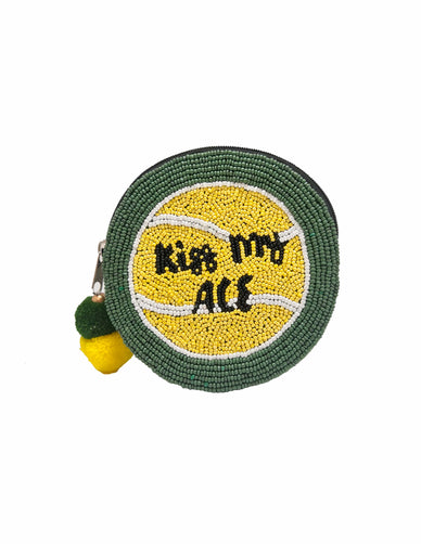 KISS MY ACE TENNIS BALL BEADED COIN POUCH