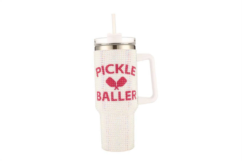 Ladies Blinged out PICKLE BALLER Themed Tumbler Cup