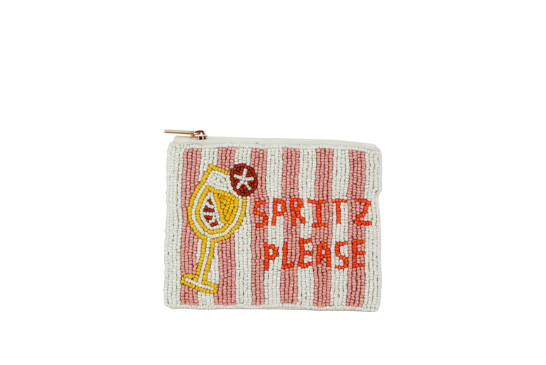 Ladies Spritz Please Fully Beaded Coin Purse California Proposition 65 warning "WARNING: This product may contain chemicals known to the State of California to cause cancer, birth defects or other reproductive harm".