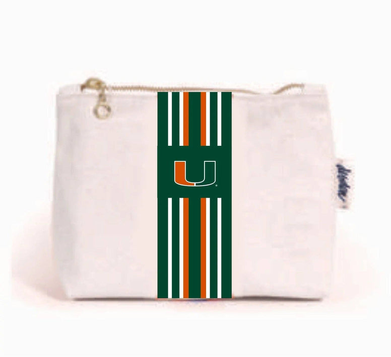 New! This handy pouch is the perfect way to store your everyday essentials. Crafted in the USA of heavy cotton canvas, features brass zipper closure and is officially collegiate licensed in full color striped print pattern. Use it to keep all the things organized in your bag, or carry it as an adorable clutch! * USA Made * Size: 8"w x 6"h x 3"d Quick Ship Times* + Easy Returns! If you are not overjoyed with your purchased, contact us within 14 days for a full refund or exchange.