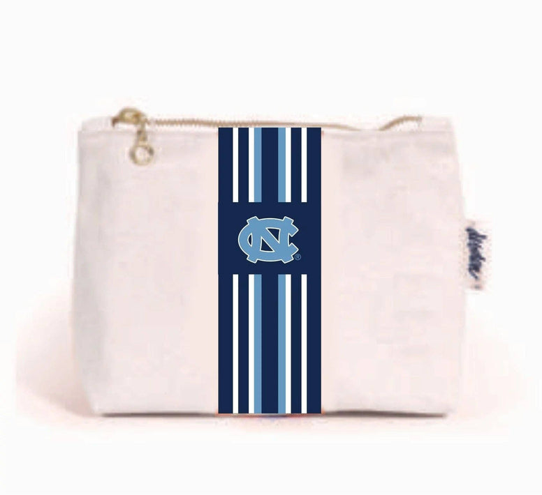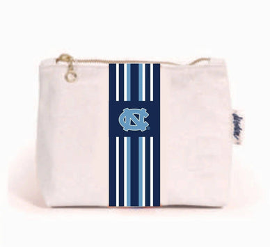 New! This handy pouch is the perfect way to store your everyday essentials. Crafted in the USA of heavy cotton canvas, features brass zipper closure and is officially collegiate licensed in full color striped print pattern. Use it to keep all the things organized in your bag, or carry it as an adorable clutch! * USA Made * Size: 8"w x 6"h x 3"d Quick Ship Times* + Easy Returns! If you are not overjoyed with your purchased, contact us within 14 days for a full refund or exchange.