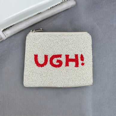 Each piece is handmade using unique beads. Therefore each piece is unique and has a slight difference. UGH! Beaded Coin Pouch - Handmade , 100% Cotton, with Pom-Pom Zipper. Elevate your accessory collection with our "UGH!" Beaded Coin Pouch. Measuring 5.5 inches in length and 4.5 inches in height, this charming pouch combines practicality with a touch of fun.