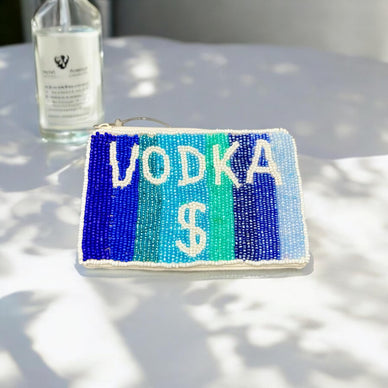 Each piece is handmade using unique beads. Therefore each piece is unique and has a slight difference. Vodka $ Beaded Coin Pouch - Handmade , 100% Cotton Elevate your accessory collection with our Vodka $ Beaded Coin Pouch. Measuring 5.5 inches in length and 4.5 inches in height, this charming pouch combines practicality with a touch of fun.